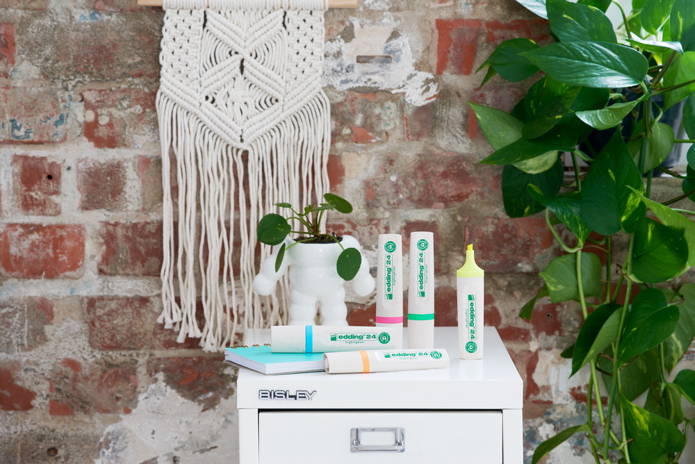 Marker za obeležavanje i isticanje tekstova i beleški na skoro svim papirnim površinama. Mogu se koristiti na materijalima odštampanim na ink jet štampačima. Odlikovan ekološkim pečatom Plavi anđeo. Poklopac i telo su napravljeni od najmanje 90% obnovljivih sirovina. Sertifikovan proizvod prema ClimatePartner-ID 13742-1910-1001. Vrh ima širinu linije od 2-5 mm. Neonsko mastilo je na bazi vode i ima visok nivo sjaja boje.
