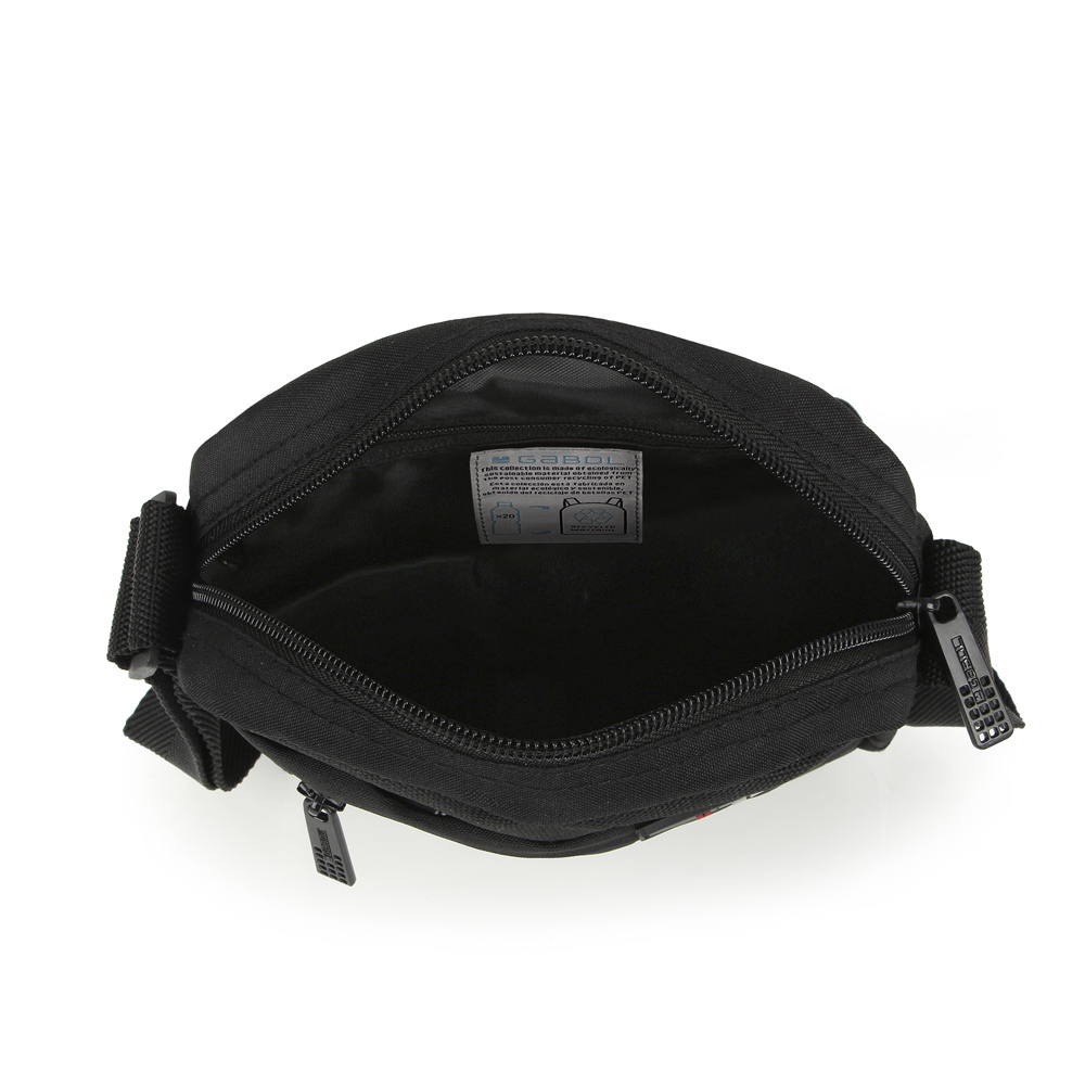 Muška torbica izrađena od RPET (reciklirani polietilen tereftalat) platna otpornog na vodu, sa dovoljno prostora da se spakuju sve potrebne sitnice. U prednjem delu se nalazi dodatna manja pregrada, kao i mala pregrada za sitnice.