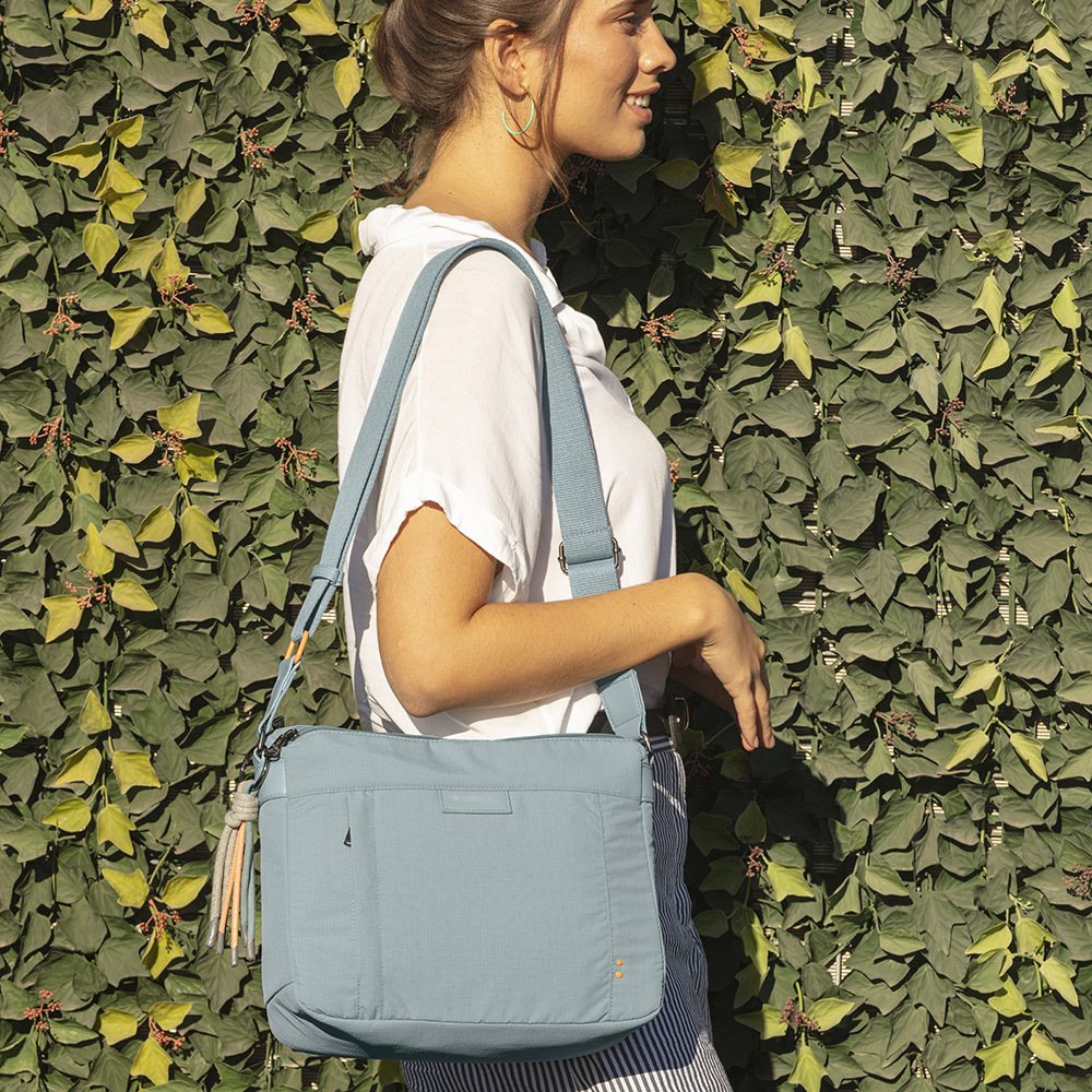 Ženska torba kompaktna i praktična tašna za svaki dan. Izradjena je od vodootpornog pvc free materijala, sa podesivim kaišem za nošenje preko ramena sa višestrukim pregradama za lakšu organizaciju. Centralne pregrade sa skrivenim džepom na zatvaranje